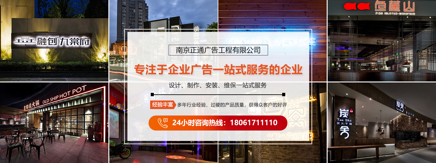 南京正通廣告工程有限公司以南京為中心輻射附近省市,專注于企業廣告一站式服務的企業。我們擁有專業設計、制作、 生產、安裝等年輕的技術隊伍,有先進的現代化設備,能夠為客戶提供優質、高效、專業的服務。正通廣告以客戶的需求為發展目標,始終以質量保證,誠信經營,完美服務的理念,竭誠為客戶提供優質的產品和完善的服務,贏得諸多客戶的信賴,歡迎廣大新老客戶蒞臨指導。